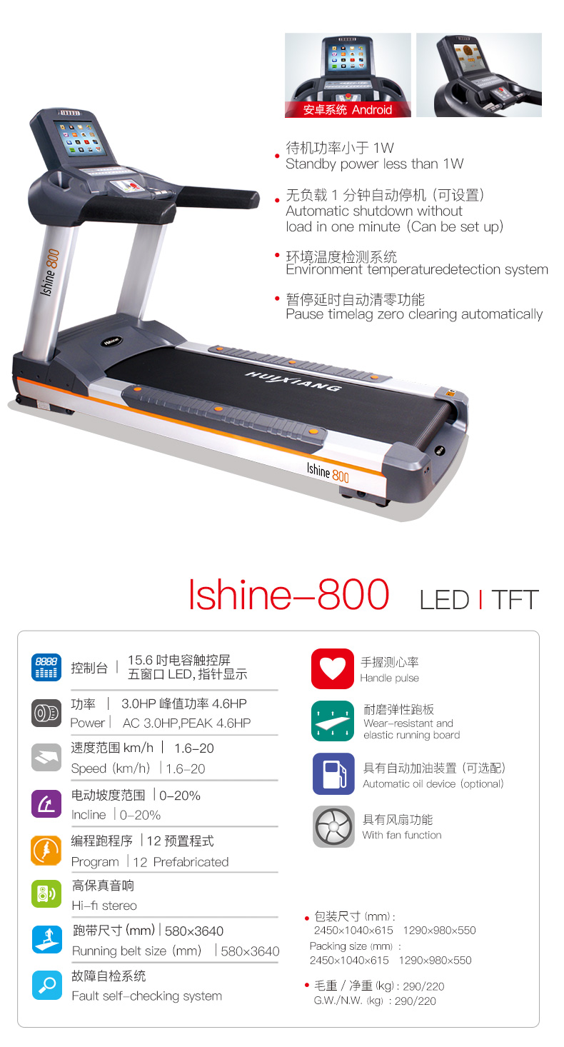 按鍵設置:6個速度直選按鍵; 6個坡度直選按鍵; 具有急停與軟停止功能